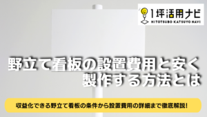 野立て看板の土地活用をはじめるにあたって、設置費用の目安はぜひ知っておきたい知識の1つです。結論からいうと、野立て看板の...