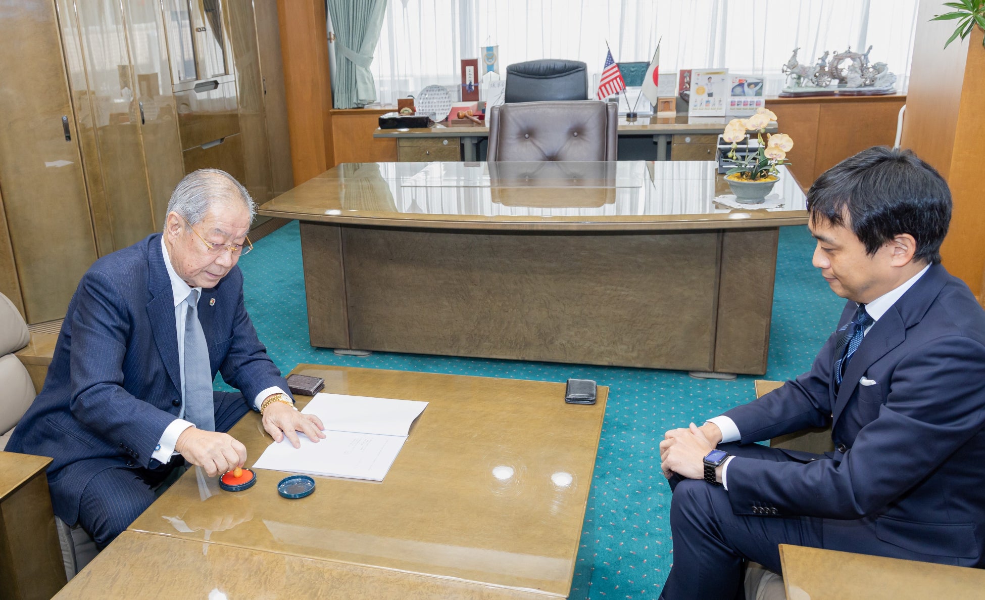 左から ハトマーク支援機構:理事長 津村 義康 ハッチ・ワーク:代表取締役社長 増田 知平