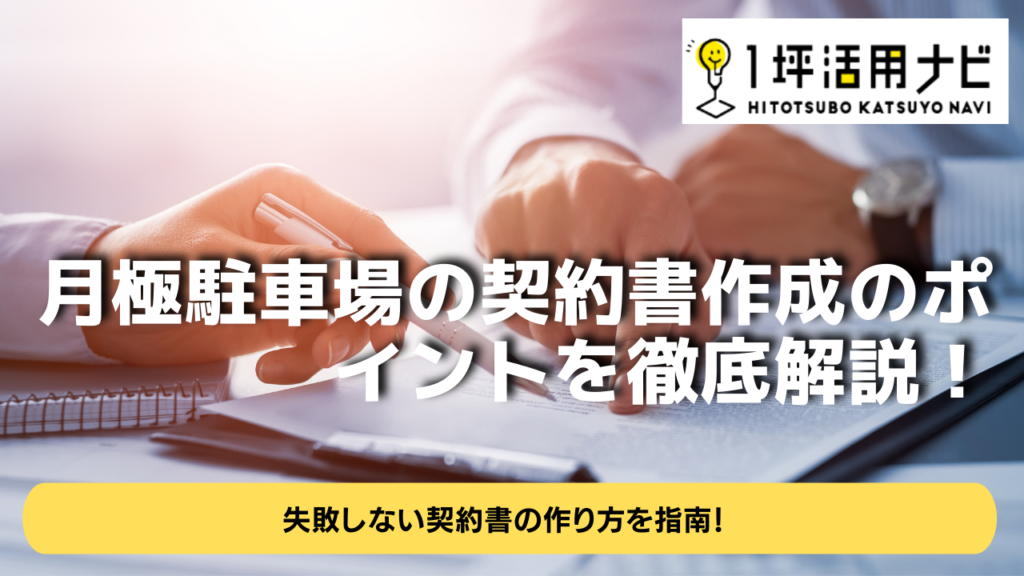 この記事では、月極駐車場の契約書について、契約の種類から契約書作成のポイントやコツまで解説していきます。