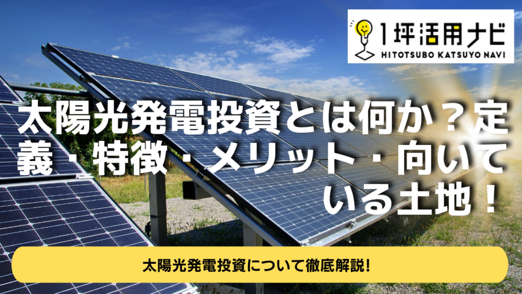 今回は 太陽光発電投資とは何か・定義・特徴・メリット・向いている土地 についてわかりやすくご紹介します。