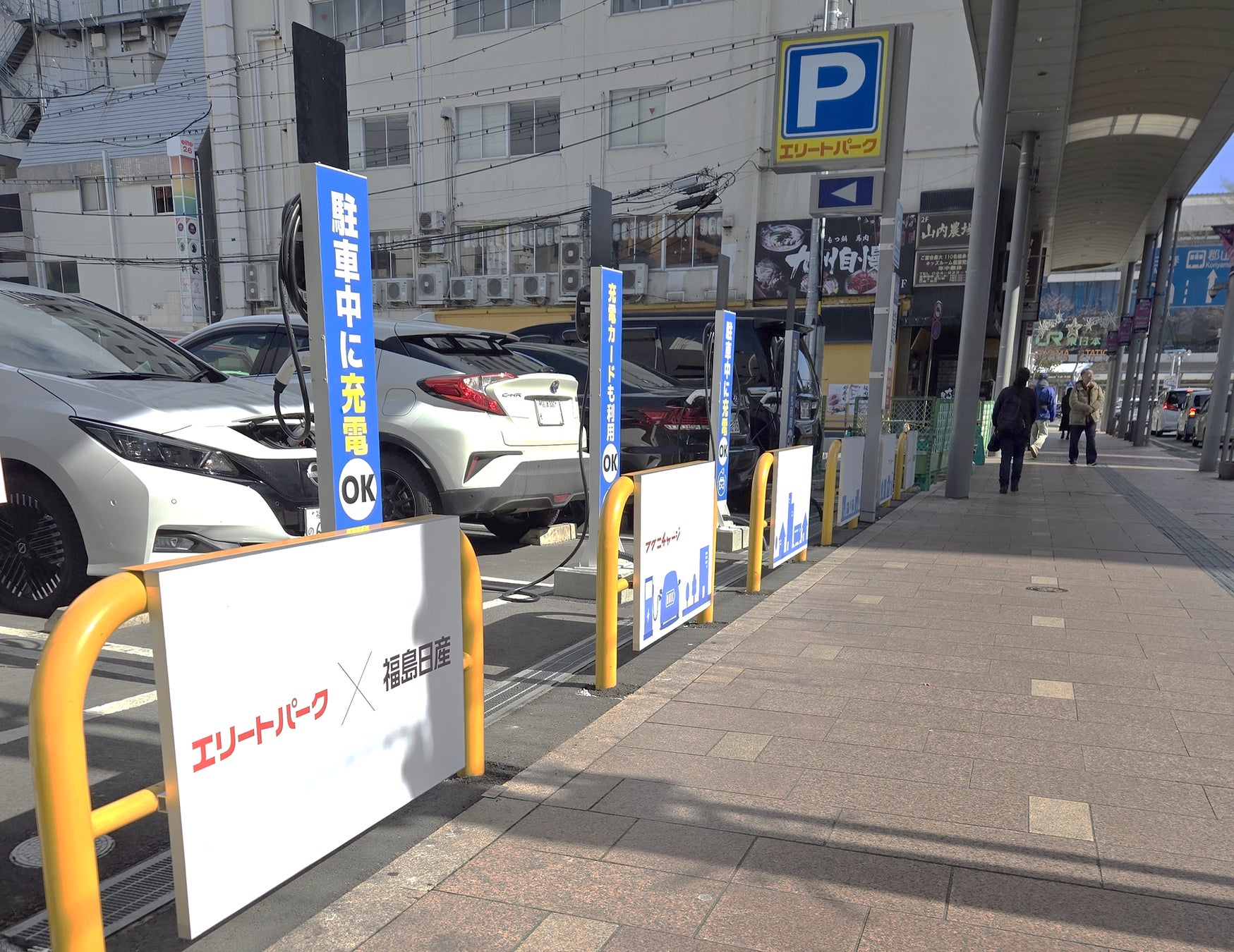 福島日産自動車株式会社(以下福島日産と略、本社:福島県福島市、代表:金子 與志幸)は福島日産グループ企業である日産部品福島販売株式会社(以下日産部品福島と略)を通じて、エリート株式会社(以下エリートと略、本社:福島県郡山市、代表:金田 義広)の運営する時間貸し駐車場「エリートパーク10(福島県郡山市駅前2丁目2−2)」へ電気自動車(EV)の充電器を4基設置しました。2025年2月15日(土)より利用開始となります。